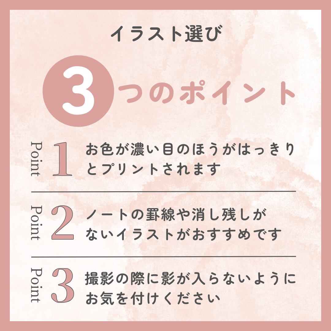イラストをスマホで撮影した写真でもOK!なるべく明るく鮮明なお写真がおすすめです。