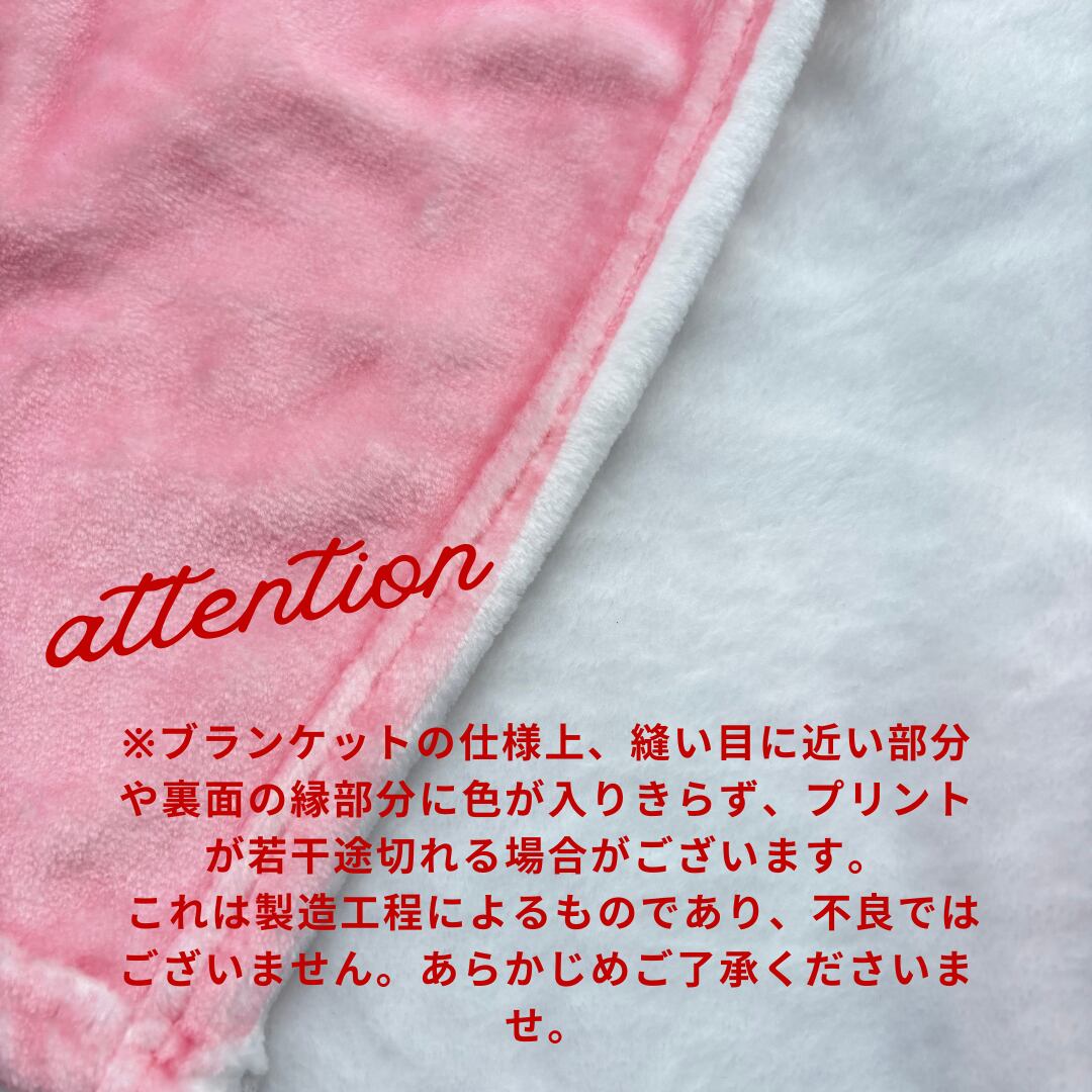 ※ブランケットの仕様上、縫い目に近い部分や裏面の縁部分に色が入りきらず、プリントが若干途切れる場合がございます。