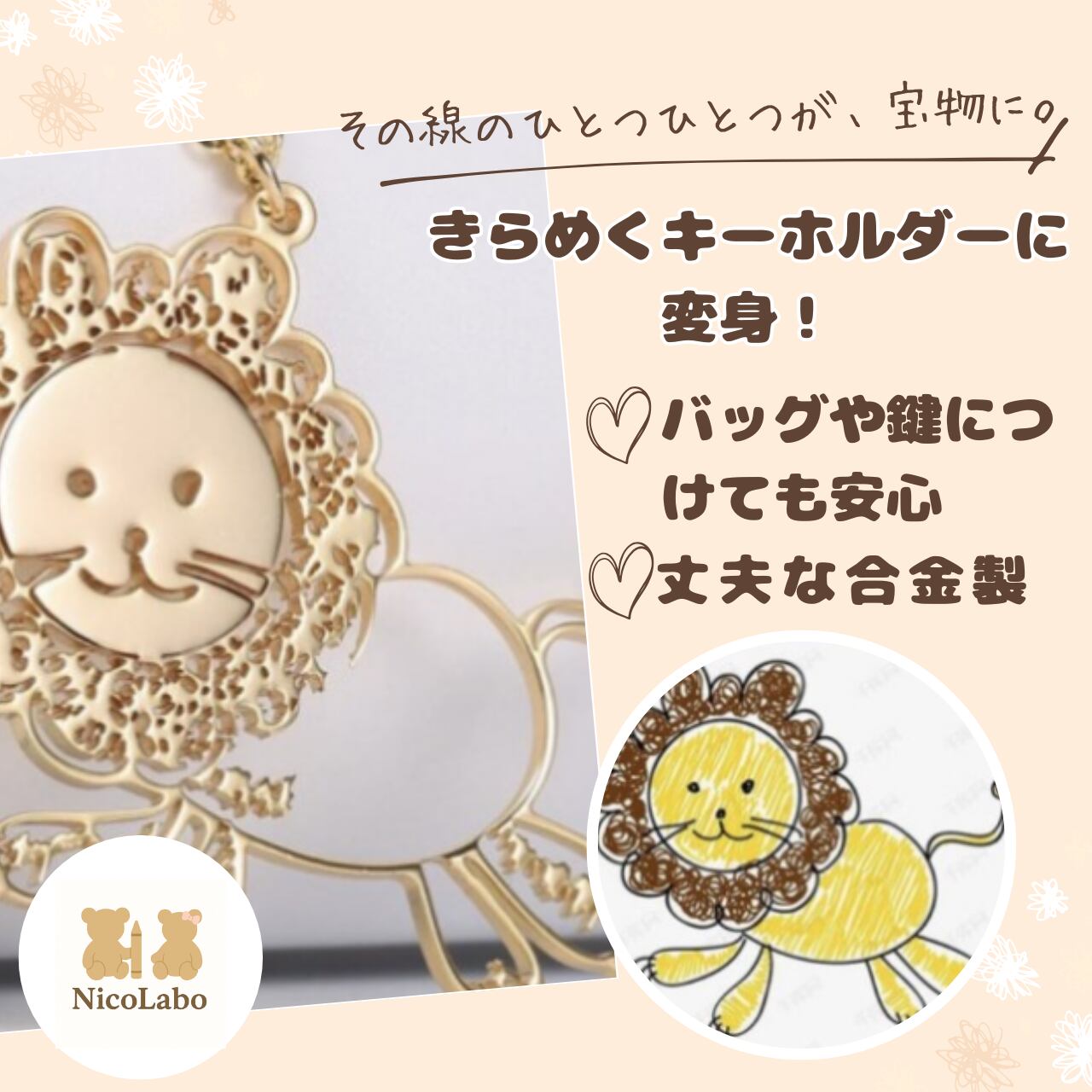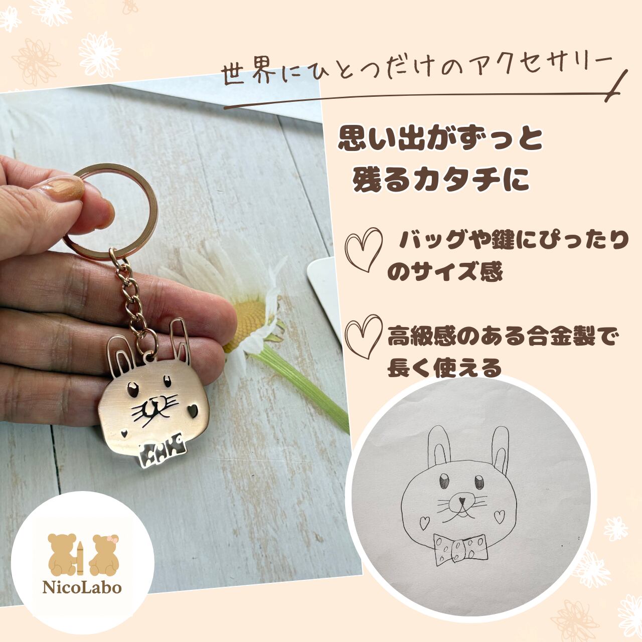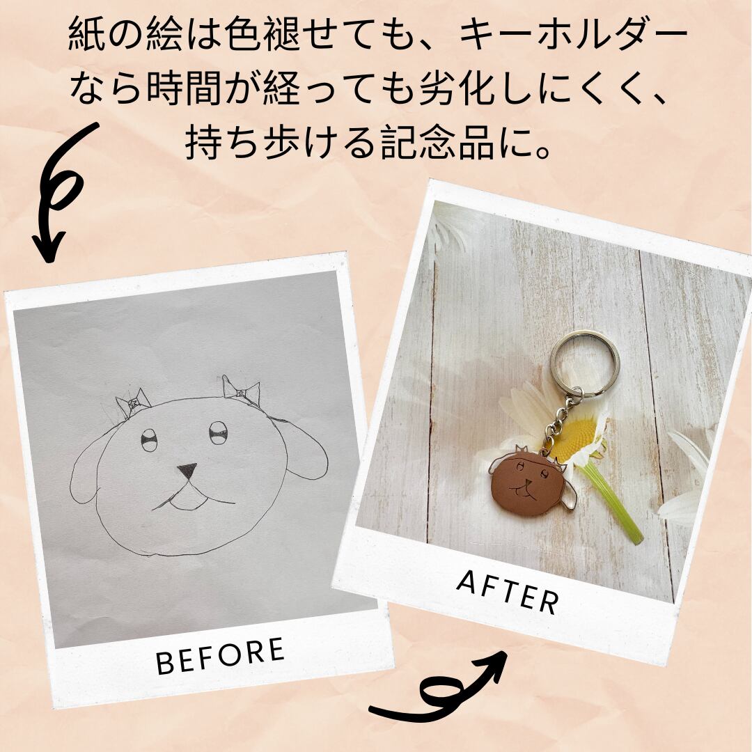 お子さまが描いたイラストが、そのままオリジナルキーホルダーに!